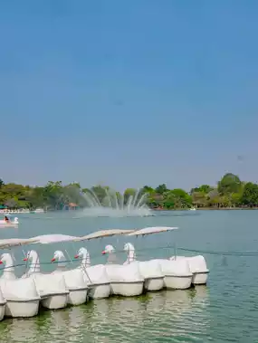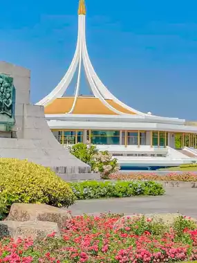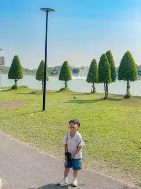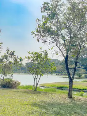 Suan Luang Rama IX Park is considered a popular spot for relaxation and exercise. The weather is great right now, and there are flowers too 🍃🌅. The weather in Bangkok is fantastic, with temperatures ranging from 20-26 degrees Celsius. During the day, there's a cool breeze, and you can take pictures of the flowers. The vibe is amazing! The flowers are expected to be in bloom until the end of January. The evening light is even more beautiful, perfect for photography enthusiasts. Besides relaxing, you can also paddle a duck boat. It's wonderful!
