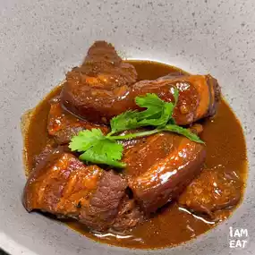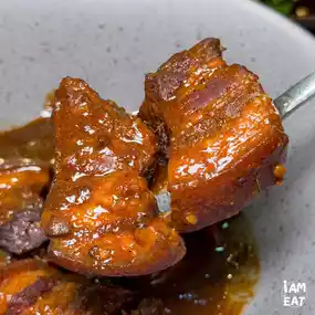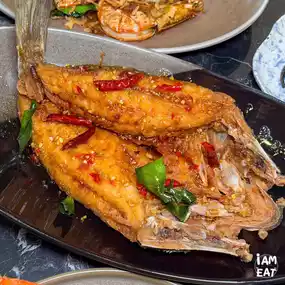 Pork belly fried in fish sauce 328.- The pork belly is very delicious.
