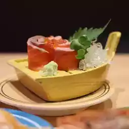 If you are sitting and eating, you might notice that there is a "golden minute" when the chef will bring ingredients imported directly from Japan to offer a promotion to customers and announce it over the microphone, explaining about the fish, and asking customers if anyone is interested in the dish the chef is holding. It is quite an interesting gimmick.