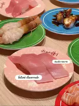 🍣 Packed with over 40 delicious menus, every bite is delicious, including salmon, jumbo salmon toro, boiled ebi shrimp, pickled mackerel, salt-grilled beef tongue, crispy fried sand crab, salmon avocado gunkan, Japanese sweet egg, and many more. We are ready to serve deliciousness with a variety of menus. Let me tell you that conveyor belt sushi lovers must not miss it 😍❤️ Red plate only 40.- 🚏: 3rd floor, Japan Avenue zone, Central World shopping mall 💰: Starting from 40 to 180 baht/plate ⏱️: 10:00-22:00