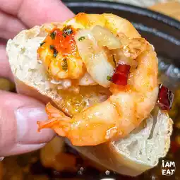 Garlic Prawns (375 baht), another favorite dish of mine. The prawns are tender and served on a hot pan with fragrant, spicy oil. It's a must-try with bread! It's so delicious!