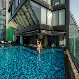 Another point that should not be missed is the outdoor swimming pool on the 32nd floor. It is an infinity pool with a great city view. Next to it is a pool bar serving drinks and snacks.