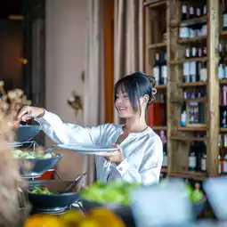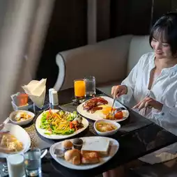 For breakfast, eat at the Medinii restaurant. It is served as a buffet. The food line is quite extensive. There are both Thai and international dishes to choose from. The restaurant also has a good atmosphere, beautiful view