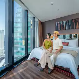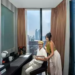 For each floor, there are not many rooms, making it feel quiet, private, and not chaotic. And with the height of the building, we can see a full view of Bangkok. Which is sweet with the bed in The Continent Panorama City View room, a spacious room with complete facilities.