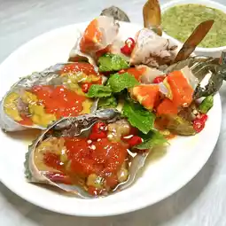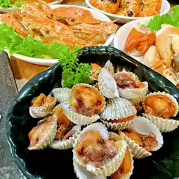 🎊🦀🦐Another premium buffet restaurant that will make you go wow! Fresh seafood, delicious food, enjoy the unlimited buffet with the restaurant's menu, such as grilled shrimp with juicy shrimp roe, grilled river shrimp, lobster, ready-to-eat crab, sea crab meat, crab eggs, oysters, salmon, sea bass, cockles, sweet clams and many other menus. The price includes drinks and desserts. ✨The restaurant uses fresh ingredients, mostly from fishermen every day. The restaurant is spacious, clean and has a good atmosphere. There are both air-conditioned rooms and outdoor areas.