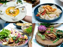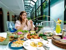 The decoration of the restaurant emphasizes nature, flowers, waterfalls, with a modern and Thai style that blends perfectly