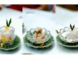 🍦 "Young Coconut Stick with Fresh Coconut Ice Cream" The sticky sticky rice is fragrant with pandan leaves. Paired with coconut ice cream, so awesome