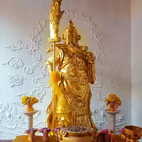This shrine belongs to the Guangdong Association of Thailand, located on Charoen Krung Road, next to Nam Plaeng Intersection.