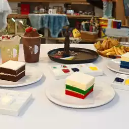 ๐๐ ๐๐ข๐ ๐ง๐๐ญ๐ฎ๐ซ๐ ๐๐๐ง๐ฏ๐๐ฌ ๐๐๐ค๐, a cake with many flavors that allows us to create our own artwork on the cake, like a canvas. There will be cake flavors to choose from, along with a tray of cream to paint with a brush as you like. Let me tell you, I really like this job. We get to use our own skills. And also get to concentrate while coloring. Super healing! ๐จ๐ฐ