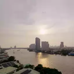 🏨 The room is in a condo style, with two bedrooms, two bathrooms, a kitchen, a living room, and a balcony. It's suitable for families or groups of friends. The room is spacious, comfortable, the bed and pillows are very soft, the air conditioner is very cool, there is a bathtub, and the view is great. You can see the curve of the Chao Phraya River just right. The sunset in the evening is beautiful.