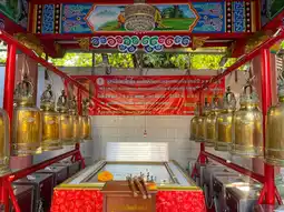 Pay homage to Luang Pu Tai Hong Kong. Inside the shrine, there are also Bodhisattva Amrita (Tai Si Yea), Guan Yin, and various deities.