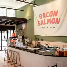 Recommend 𝗕𝗮𝗰𝗼𝗻 𝗦𝗮𝗹𝗺𝗼𝗻 in Charoen Krung area. It is a homemade pizza shop in authentic Italian style. I would like you to try it. The pizza menu has a delicious taste, rich cheese. In addition, there are other menus as well. We also ordered Wagyu beef stir-fried with holy basil. It was equally delicious. The shop is decorated in a comfortable atmosphere. If anyone is looking for a chic restaurant, I recommend this. The shop is in Charoen Krung area. There is a parking lot.