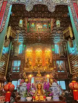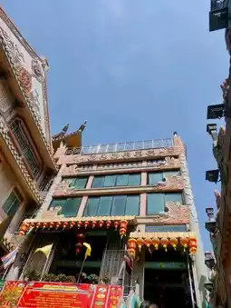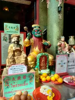 Wat Thipphayawari Vihara, also known as Kam Low Yee, is another temple where people commonly go to make merit and pray during the Chinese New Year or the Thai-Chinese New Year festival. It is believed that this place can help alleviate bad luck. You can make merit at the temple and buy offerings for a reasonable price from the staff to counteract bad luck. The temple also has the 'Fate-Changing Deity' that you can pray to for good fortune throughout the year without having to travel all the way to Hong Kong. The most important figure at the temple is the Green Dragon Deity, believed to be the guardian of the temple. He is responsible for the sacred holy water in the temple, which you can take home, and he also provides protection and enhances your fortune.