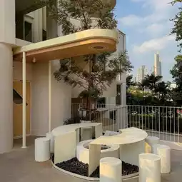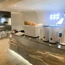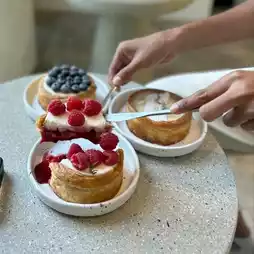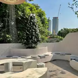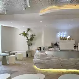Rainforest Cafe in Charoen Nakhon area with the concept of a rainforest in the city. The shop has a very beautiful design. The interior of the shop is decorated in a soothing white-cream tone. The design is similar to rocks in various places, both on the walls and the counter. The atmosphere is like being in a forest with moss and a glass waterfall wall with water flowing all the time. There is also an outdoor area with a great atmosphere, surrounded by trees. The mood is great. Come in the evening, the light is beautiful.