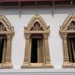 The temple was built in the style of the Front Palace art. The ordination hall is large and enshrines Phra Phuttha Narasi Trilok Chet.