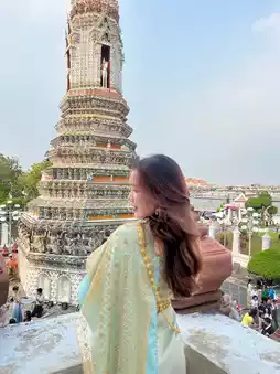 Wat Arun Ratchawararam, commonly known as **Wat Arun** 🌅, is one of the most beautiful temples in Bangkok. It stands out with its towering prang 🏯 adorned with glazed tiles and Chinese porcelain that reflect the morning sunlight magnificently. If you love photography or creating content, this place is a must-visit as it offers numerous picturesque spots!