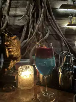 Secret place to try The shop does not have a menu. The bartender will ask what kind of drink you want, what you are thinking or feeling, what you are allergic to or cannot eat. Then you will receive a drink that comes from your own feelings, which is something very special. The drinks are delicious. The bartender is cute, inviting conversation, and describes the drinks that are made in depth. The atmosphere of the shop is also very good. It feels mysterious and great. You can go alone or with your partner. I recommend making a reservation in advance. Most importantly, the shop has unlimited chicken legs. It's delicious. The front of the shop is decorated with magazine covers. It is located at Lat Phrao Intersection, very convenient to travel. If you go on Thursday, there will be live music. The singers are very beautiful. On Fridays, there will be a DJ playing music. The shop closes at 2 am.