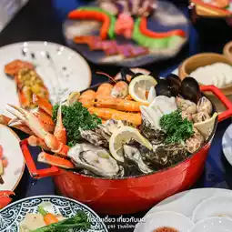Another round of Saturday evening buffet, great promotion, full food line, drinks included, sit and eat for 4 hours, Amaya Food Gallery, Amari Bangkok Hotel, enjoy unlimited deliciousness, Amaya Seasons Buffet with a premium seafood buffet with a variety of menus, including soft drinks and 2 Canadian lobsters per person!!!! To put it simply,
