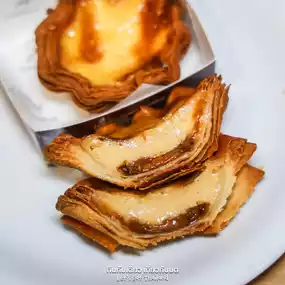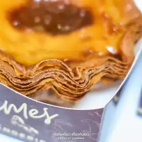 End of the year, we can't not give it to James Boulangerie's French Egg Tart Croissant. It's another hit shop. French Egg Tart Croissant A.O.P Butter French Croissant 🧈 Thin and crispy dough. Even if you refrigerate it, it's still crispy. Smells of butter. There are 2 flavors.