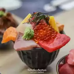 🚩 Tenkomori Don (720฿) Another overflowing rice bowl that I'd like to recommend. Anyone who likes variety must end with this menu. It's like the highlight of Shisami is all in one place: minced toro, salmon, buri, hamachi, madai, hotate, akami, eel, salmon roe, sweet egg. A variety of textures in one menu. Seeing the cup like this, I have to say that it's quite filling.