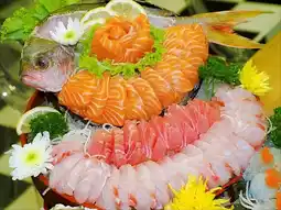 Fried sea bass with fish sauce, sashimi menus, various pickled menus