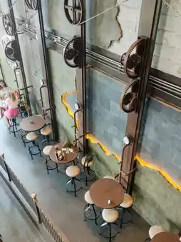 Atmosphere: The cafe is grand and impressive, with unique statues of both men and women. The ambiance inside is very pleasant and luxurious. The interior is spacious and comfortable with a dark color scheme. The drinks are strong and the cakes are delicious with great texture. The cakes are beautifully designed with both elegant and artistic styles. I wanted to try several pieces, but one piece was enough as the cakes are quite large. There are many photo spots, including the bar counter, beer counter, statue corner, and sofas. The cafe has a second floor and plenty of parking space.