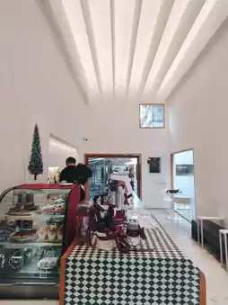 Atmosphere: The shop is cute, minimal, white, decorated according to the festival, very beautiful. I recommend the medium roast, delicious. The shop atmosphere is good. You can sit and work, but there are not many tables. Suitable for sitting and chilling. There are seats outside, but it must not be hot to sit comfortably. There are many photo spots, very beautiful.