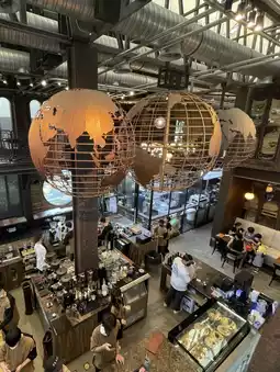 Located on the outskirts of Bangkok, the celebrity all-Thailand champion coffee shop, decorated and ruined industrial style design building two floors, the top of the coffee shop has three huge globes, three globes represent the past, present and future of coffee, as its name - rolling roaster "Coffee World Never Stops Spinning"