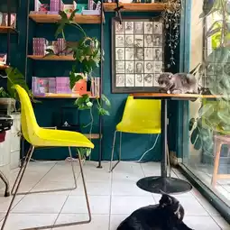 𓂃🐈 A cafe and bookstore with cats welcoming you from the door, waiting to charm all the cat lovers.