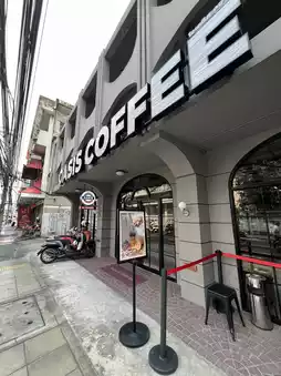 A 24-hour cafe near the MRT, Huai Khwang Station, is very suitable for a meeting point, chilling out, working from home, meeting or reading a textbook.