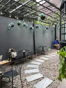The ground floor area is more crowded, suitable for meeting and talking. The upper floor area is quieter, suitable for working, reading a book. There is an outdoor area at the back with a beautiful garden and clean bathrooms. The shop has a motorcycle parking lot in front, but no car parking. The train is the most convenient. Walk for about 3 minutes to get there.