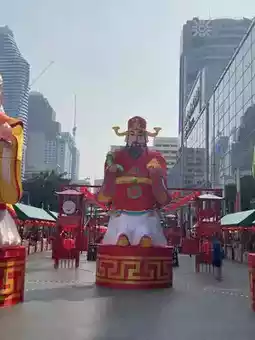 The atmosphere is similar to Yaowarat or China. The only thing missing is the smell of incense because there doesn't seem to be any incense here. But in terms of beliefs, it's definitely second to none.