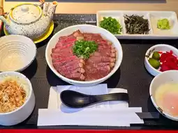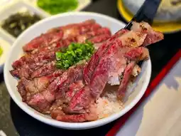 🥩 Charcoal-grilled Kamimura Beef Rice - Uses F1 beef imported from Japan, ribeye, grilled with the restaurant's special sauce, served with onsen egg, seaweed, wasabi, pickles, cabbage salad and soup. It's so good.