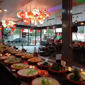 Shabu-grilled Mala restaurant, conveyor belt style, price 289.- including Net. Refill water 39. with snacks and ice cream in many flavors