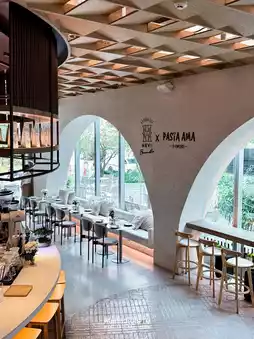 #Dinner restaurant For those who are looking for a restaurant with a good atmosphere during this Valentine's Day, I recommend this place. Pasta Ama x Hey! Beanstro is the newest branch in the heart of the city at the brand new S-OASIS office building, opposite Chatuchak Park.
