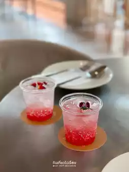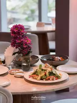 The shop has 2 floors. If you want a more private and luxurious atmosphere, we recommend going to the 2nd floor, decorated in pink to match this festival. The food focuses on fusion style, pasta, salads, snacks, as well as coffee and many cakes.