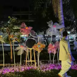 🪷 Blossom Experiment: Bloom Boom Bridge, a large colorful flower sculpture made from recycled materials inside Pak Khlong Talat