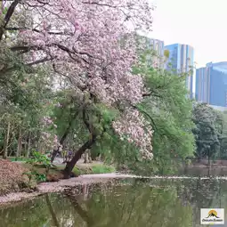 ðŋðļâēïļWachirabenchatat Park or Railway Park is a large public park in the heart of Bangkok where you can walk and see the pink Trumpet Tree flowers that are in full bloom. They are blooming continuously throughout the park. It takes about 2 weeks before the flowers fall off.