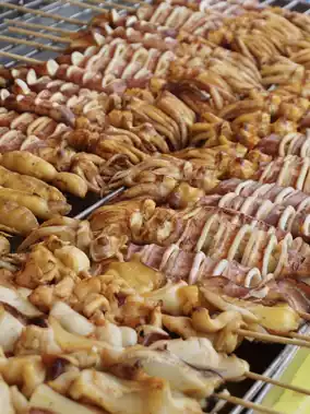 We also love snacking on street eats like grilled quail eggs, which are bite-sized, smoky, and packed with flavor. The market is filled with unique small bites like these—crispy fried insects, juicy mango sticky rice, and even sizzling Thai sausages—all of which add to the thrill of eating our way through Chatuchak.