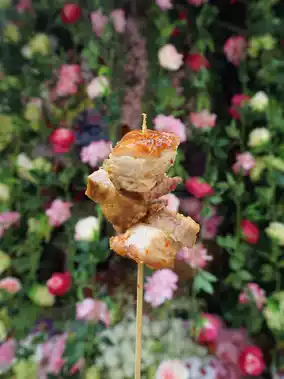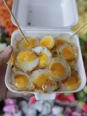As we wander through the maze of stalls, we can’t resist the mouthwatering Moo Ping (grilled pork skewers). The smoky, tender meat, marinated in a delicious blend of Thai spices, is always a crowd-pleaser. The flavors are so authentic that we can’t help but grab a few more skewers each time we visit.