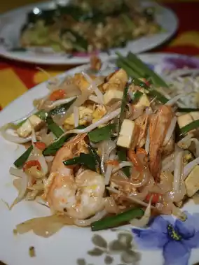 Pad Thai is another must-have, and it’s always a treat to dive into a plate of perfectly stir-fried noodles. The balance of tangy tamarind, crunchy peanuts, and lime makes it the ultimate comfort food, and it’s a staple for us whenever we’re in the market.