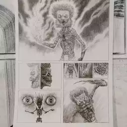 In the world of Mr. Krang and his friend George, the artist tells the story of the coexistence between humans, angels, ghosts, spirits, demons, and spirits in a parallel dimension filled with endless desires, happiness, suffering, and suffering. This world reflects the cycle of life and karma in a dark fantasy that is both mysterious and creepy, but still beautiful and powerful in its details.