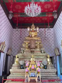 King Nangklao, Rama III, therefore took on the responsibility of continuing the renovation according to his wishes. In this renovation, he ordered a new plan for the temple, the original ordination hall was changed to a viharn, a prang was built, and a new ordination hall was built.