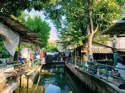 The entire trip: Take the BTS Skytrain to Wongwian Yai Station →_→ Visit the old village along the Chao Phraya River →_→ The ancient temple Luang Pho Bot Bonหลวงพ่อโบสถ์บน →_→ Visit the local residents' night market