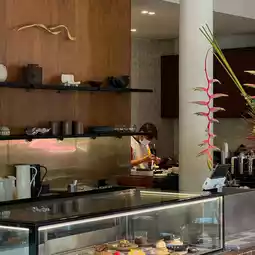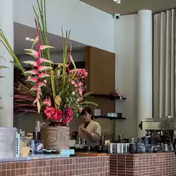 A stylish cafe. Come and soak in the relaxing atmosphere full of peace. Inside the shop, there is also a prominent image of a hand releasing a large balloon. It should be the highlight of the shop. There are many photo spots.