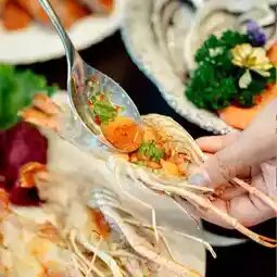Only once a month!! With a great value international buffet, only on the first Sunday of each month, with special menus that are not the same. There are many menus for us to enjoy in our style, whether it's premium seafood on ice, such as Alaskan crab, Korean oysters or grilled river prawns, ribeye steak, rosemary lamb shank, pasta, wagyu beef noodles, sushi and sashimi, Peking duck, roast pork and many other sweet and savory menus. With music to enjoy