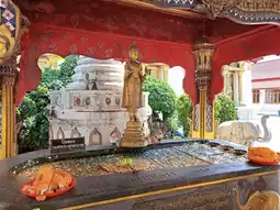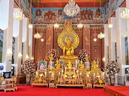 Inside the chapel, there is the enshrined "Phra Phutthanarasi Trilok Chet Mahathisak Puchaniya Chayan Ta Kodom, the Supreme Religion of Anavarayana". Buddhists usually come to pray for victory in work, business, as well as luck and auspiciousness.