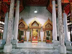 Bangkok, Thailand is a world-famous tourist resort city. Every day, thousands of tourists come to Bangkok for sightseeing and vacation. Bangkok has many historical sites and royal temple attractions. This time we will introduce a landmark temple attraction located on the Chao Phraya River in the center of Bangkok: Wat Phra That Pratunam. No tickets required, free to visit and take photos📸. You need to take off your shoes to enter the temple. Wat Phra That Pratunam is a very famous landmark temple attraction in Bangkok. Its iconic building is the golden Buddha. Unfortunately, the Buddha was under repair when I went there. This is definitely a great spot for taking photos. The other buildings in the temple are also tall, majestic and magnificent. Also very suitable for taking pictures📸. The temple is solemn, quiet and peaceful, very suitable for a leisurely visit and taking photos📸. There are public toilets and chairs for tourists to rest in the temple.