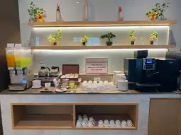 Here, both food and drinks are served as a buffet. There are many choices, both savory and sweet, fruits. The beverage zone has tea, coffee and alcoholic drinks that can be refilled as much as you want. Other amenities include bathrooms and showers. Free Wi-Fi is available. It is suitable for relaxing before boarding the plane. The atmosphere is quiet and not crowded. Come and use the service.