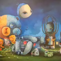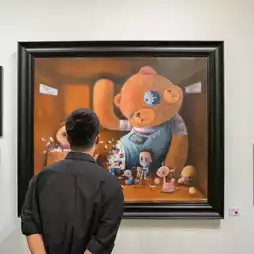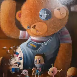 The artist uses the teddy bear as an important symbol that reflects his childhood identity and conveys those memories in the form of surrealism art that combines dreams and imagination, resulting in a unique character that contains feelings of sadness, yearning, and warmth at the same time, creating a contradictory feeling between the brightness of childhood and the feeling of loneliness hidden within. In addition, the composition of the image creates a sense of an imaginative world that invites us to dive into and explore the limitless world of dreams and imagination.